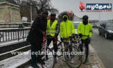 பனியில் உறைந்த கால்கள் உந்த மனதில் நிறைந்த ஈழம் வெல்ல ஐநா நோக்கிய ஈருருளிப் பயணம் 3 வது நாளாக