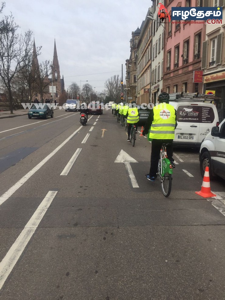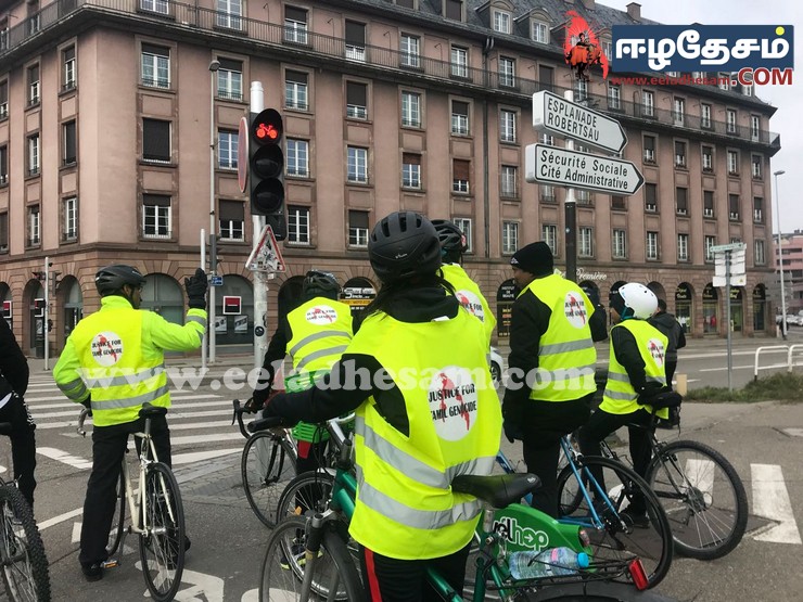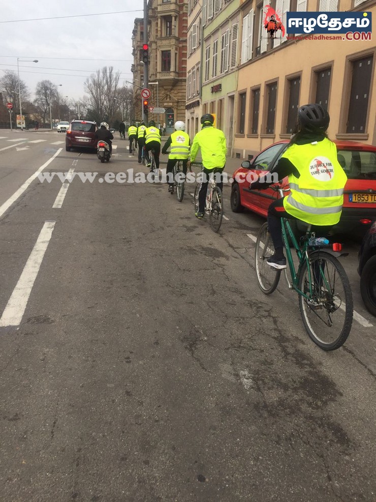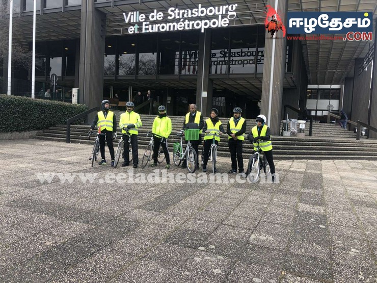 Phalsbourg நகரசபை முன்றலில் இருந்து ஆரம்பித்த நீதிக்கான ஈருருளிப் பயணம் அம் மாநகர முதல்வரிடம் மனு கையளிக்கப் பட்டது, தொடர்ச்சியாக 43 KM தொலைவு கடந்து Saverne மாநில முதல்வர் மற்றும் நாடாளுமன்ற உதவியாளரிடம் எமது தார்மீக அடிப்படை உரிமை சார்ந்தும் பேசப்பட்டது. வரலாறுகளின் வழித்தடங்களில் நியாயமான கோரிக்கைகள் என்றும் மறுக்கப்பட்டது கிடையாது. அவ்வழியே எமது போராட்டத்தின் நியாயமான கோரிக்கைகளும். நடந்து கொண்டு இருக்கும் இனவழிப்பு , கலச்சார சீர்கேடு, நில அபகரிப்பு… எனும் திட்டமிட்ட சத்தமில்லா இனவழிப்பும் தெளிவாக பேசப்பட்டு எழுத்து வடிவாகவும் கையழிக்கப்பட்டது. Strasbourg மாநகர சபை முதல்வரையும் சந்தித்து அவரிடமும் எமது மனு கையழிக்கப்பட்டு தொடர்ச்சியாக Strasbourg வாழ் தமிழ் மக்களின் வரவேற்போடு ஐரோப்பிய ஆலோசனை சபை முன்றலில் கவனயீர்ப்பு போராட்டம் எமது இனவழிப்புச் சான்றின் படங்கள் , எமது கோரிக்கைகள் தாங்கிய பதாகைகள் கொண்டு ஆர்ப்பாட்டம் அமைதிவழியில் நிகழ்த்தப்பட்டது.