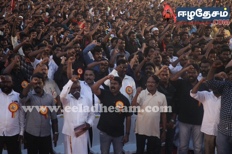 எல்லா தேசிய இனங்களுக்கும் வாழ்க்கையில் எப்போதாவது தான் போராட்டங்கள் வருகிறது; ஆனால் தமிழின மக்களுக்கு போராட்டமே வாழ்க்கையாகி நிற்கிறது. எல்லாவற்றிற்கும் போராடித்தான் ஆகவேண்டியிருக்கிறது. சிதைந்து அழிந்து கொண்டிருக்கின்ற தமிழ்த்தேசிய இன மக்கள் பாதுகாப்பாக வாழ்வதற்குப் போராடித்தான் ஆகவேண்டும் என்ற நிலைக்குத் தள்ளப்பட்டிருக்கிறார்கள். இந்த தேசியப் பெரும்பணியிலிருந்தும், வரலாற்றின் பேரழைப்பிலிருந்தும் தமிழ் இளம் தலைமுறையினர் ஒருபோதும் ஒதுங்கிச் செல்ல முடியாது’ என்கிறார் நம் தேசியத்தலைவர். தாய்நிலத்தை விட்டு வெளியேறிவிட்டால் நாம் அடிமை; நாம் அகதி! எனவே விலை தலையே ஆயினும் அதைக் கொடுத்து நம் தாய்நிலத்தை நாம் காப்பாற்ற இறுதிவரை உறுதியாகப் போராடுவோம். இது நமக்கான போராட்டம் அல்ல; நமது எதிர்கால தலைமுறையினருக்கானப் போராட்டம். இது பாதிக்கப்பட்ட தனிப்பட்ட நபர்களுக்கானப் போராட்டமாக இல்லாமல் மக்களின் போராட்டமாக சனநாயகப் புரட்சியாக மாறவேண்டும்! முதலமைச்சரின் மாவட்டத்திலேயே வேளாண் விளை நிலங்களை கையகப்படுத்தமுடியவில்லை என்கிற நிலையை உருவாக்கவேண்டும். அப்போதுதான் மற்ற இடங்களில் வேளாண் விளை நிலங்களைக் கையகப்படுத்தவேண்டும் என்கிற எண்ணம் அரசுக்கு வராது. நாம் நிலத்தை இழந்தால் நமது பலத்தை இழப்போம்!