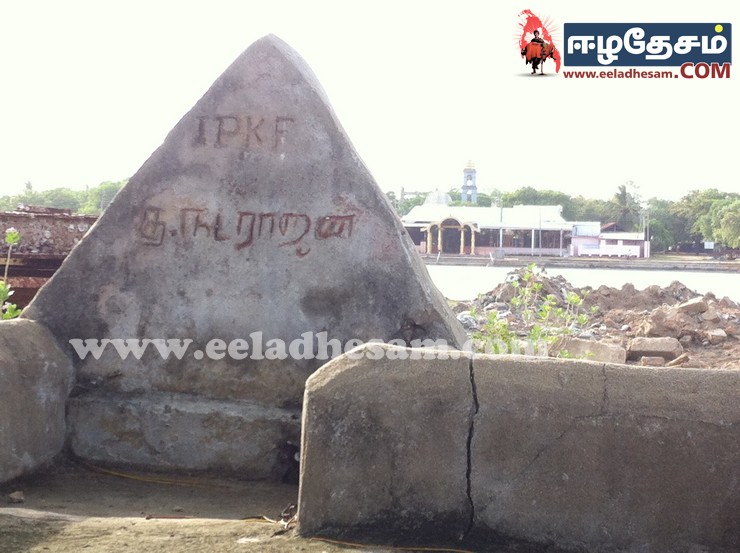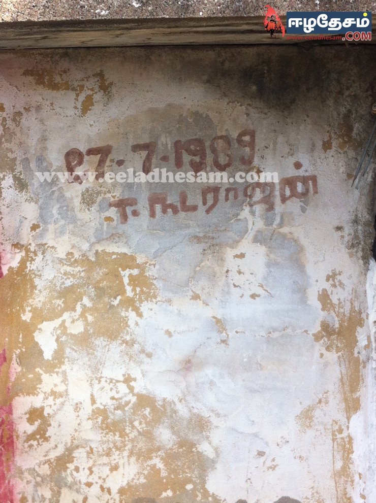 கோவிலின் கோபுரம் போன்று இரு பக்கத்திலும் கட்டப்பட்டுள்ள பகுதியில் TN – பேபிராஜ் அமைதிப்படை மற்றும் IPKF த.நடராஜன் என்ற பெயர்கள் பொறிக்கப்பட்டுள்ளது. அத்துடன் பக்கவாட்டு சுவரில் 27.07.1989 என்று உருவாக்கப்பட்ட நாள் மற்றும் த.நடராஜன் என்றும் சிவப்பு வர்ணத்தில் எழுதப்பட்டுள்ளது.