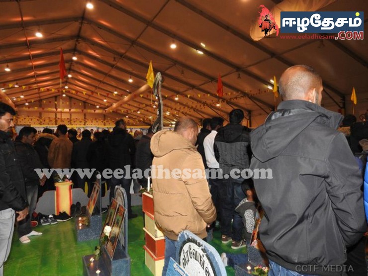 பகல் 12.30 மணிக்கு பொதுச்சுடரினை தாய்த் தமிழகத்தில் இருந்து வருகைதந்திருந்த இன உணர்வாளர் திரு.கோவை இராமகிருஸ்ணன் அவர்கள் ஏற்றிவைக்க, தமிழீழத் தேசியக் கொடியினை பிரான்சு தமிழர் ஒருங்கிணைப்புக் குழுப் பொறுப்பாளர் திரு.மகேஸ் அவர்கள் ஏற்றிவைத்தார். தொடர்ந்து, கல்லறைவணக்கம் நடைபெறும் துயிலும் இல்லம் அமைந்திருந்த மண்டபத்திற்கு முக்கிய பிரமுகர்கள், மாவீரர் பெற்றோர், உரித்துடையோர், அனைவரும் அழைத்துவரப்பட்டனர். தமிழீழத் தேசியத்தலைவரின் கடந்தகால மாவீரர்நாள் உரைகளின் முக்கியதொகுப்புக் காணொளி திரையில் காட்சிப்படுத்தப்பட்டது. 13.35 மணிக்கு அகவணக்கம் இடம்பெற்றது. துயிலும் இல்ல மணியோசை ஒலித்ததைத் தொடர்ந்து மாவீரர் சங்கரின் திருவுருவப்படத்தின் முன்பாக ஈகைச்சுடர் ஏற்றப்பட்டது. ஈகைச்சுடரினை 05.11.1999 அன்று நெடுங்கேணியில்; இடம்பெற்ற நேரடிச் சமரில் வீரச்சாவைத் தழுவிக்கொண்ட மேஜர் அருளினியின் தாயார் ஏற்றிவைத்தார்.