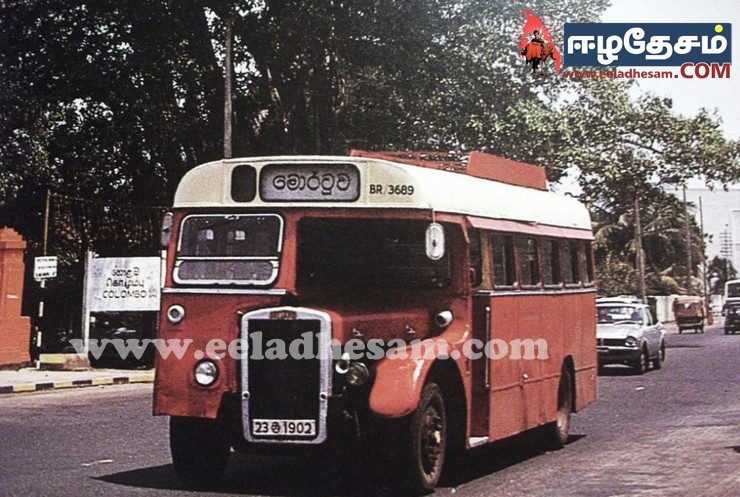 கொழும்பில் ஒரு பிரதான சாலையில் ஓடும் அரசாங்க பேருந்து ஒன்று. 1970ஆம் ஆண்டளவில் பிடிக்கப்பட்டுள்ளது. இதுபோன்ற ஏராளமான பேருந்துகள்தான் அன்றைய கால இலங்கையில் முக்கியமான போக்குவரத்துச் சாதனங்களாகும்.