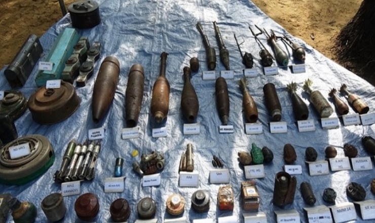 யாழ்ப்பாணம் மற்றும் கிளி நொச்சி மாவட்டங்களின் எல்லையில் அமைந்துள்ள முகமாலை பகுதியில் போரின்போது பயன்படுத்தப்பட்ட வெடிப்பொருட்கள் அகற்றப்பட்டுவருகின்றன.